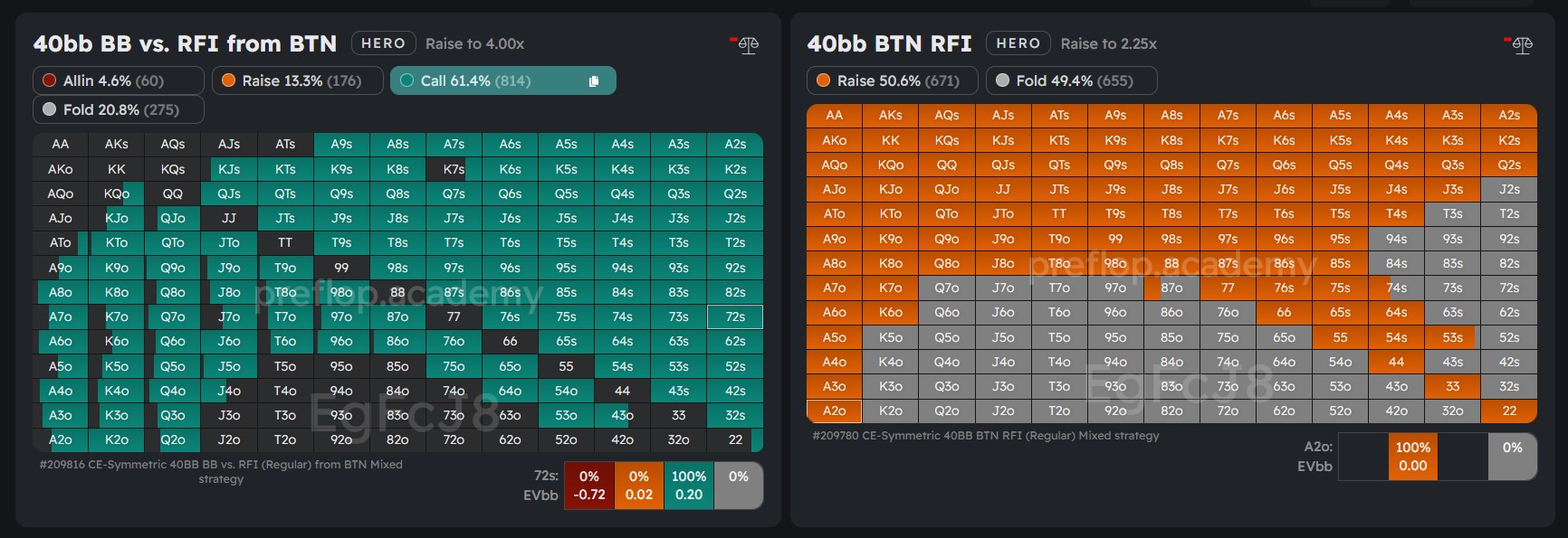 - It’s important to highlight that, in the scenario we encounter here, each hand within the BTN player’s range reaps the benefits of the entire range’s vast equity advantage (58% vs 42%). The preflop raise by the opponent set the stage for this equity realization dynamic.