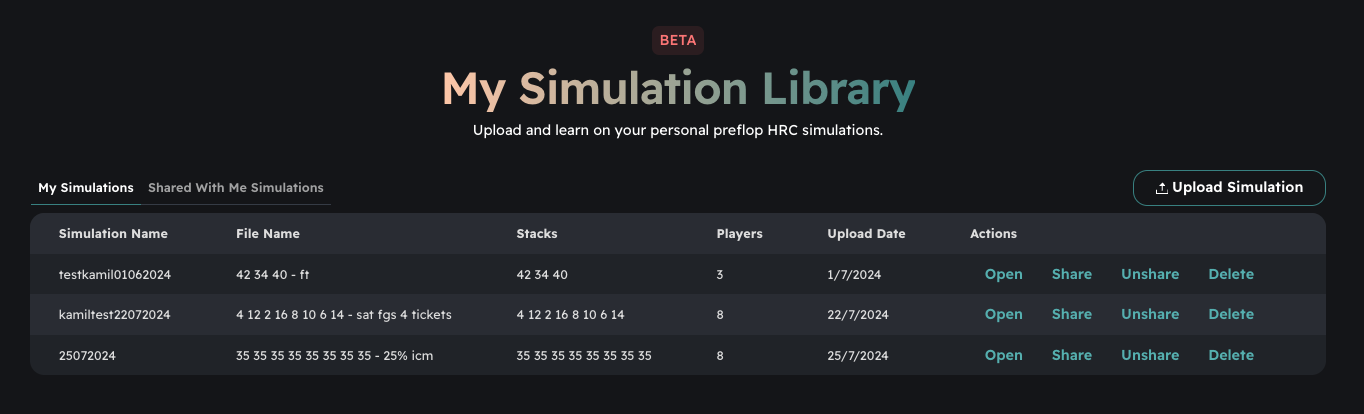 At Poker Academy, we’re absolutely thrilled to introduce our latest feature: the HRC Library! π This exciting new addition lets you upload your own HRC simulations and easily browse preflop charts with our user-friendly interface. π Whether you’re analyzing hand ranges or refining your strategy, our Preflop Charts tool ensures a smooth and intuitive experience. π―