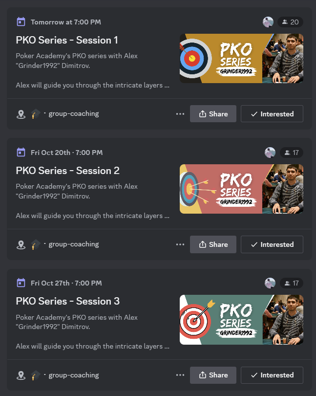 Spotlight on our New Coach: We’re thrilled to introduce Alex “grinder1992” Dimitrov to Poker Academy’s elite coaching roster. With professional poker experience spanning since 2011, Alex boasts an impressive track record both online and in live tournaments. This October promises to be enlightening, as we have three special sessions scheduled with him, focusing on the “PKO Series”