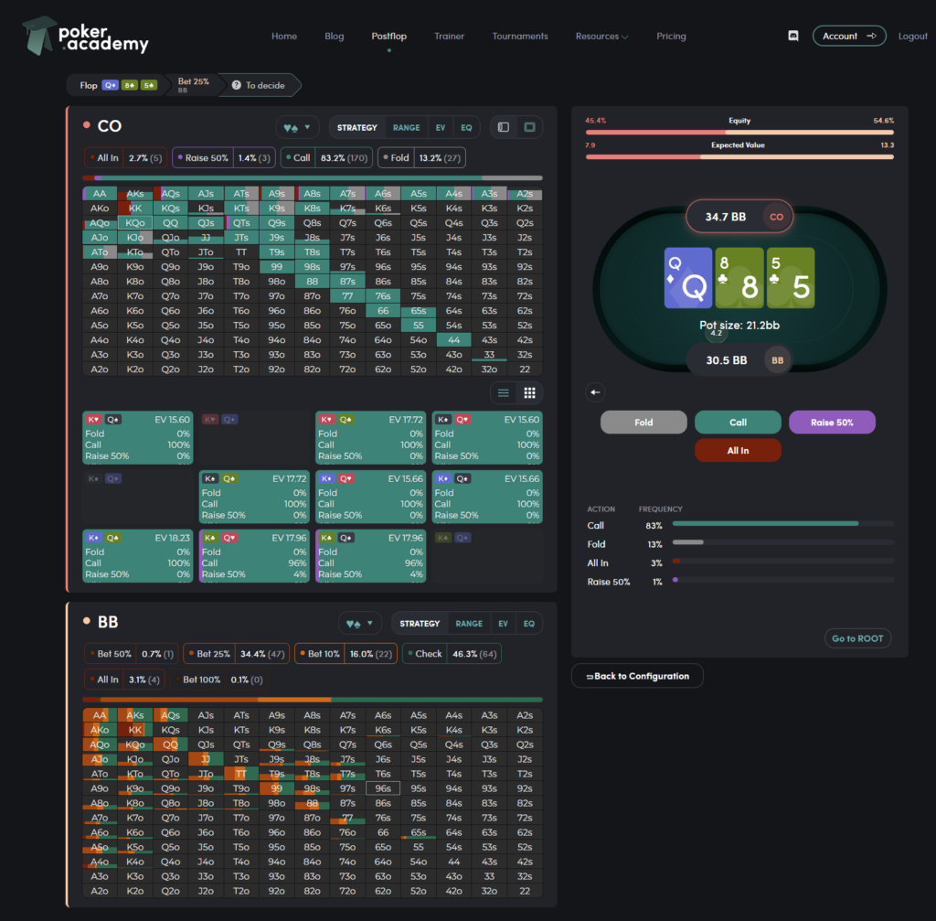 In this article I’m going to quickly show you how to improve your postflop strategies with Poker.Academy.